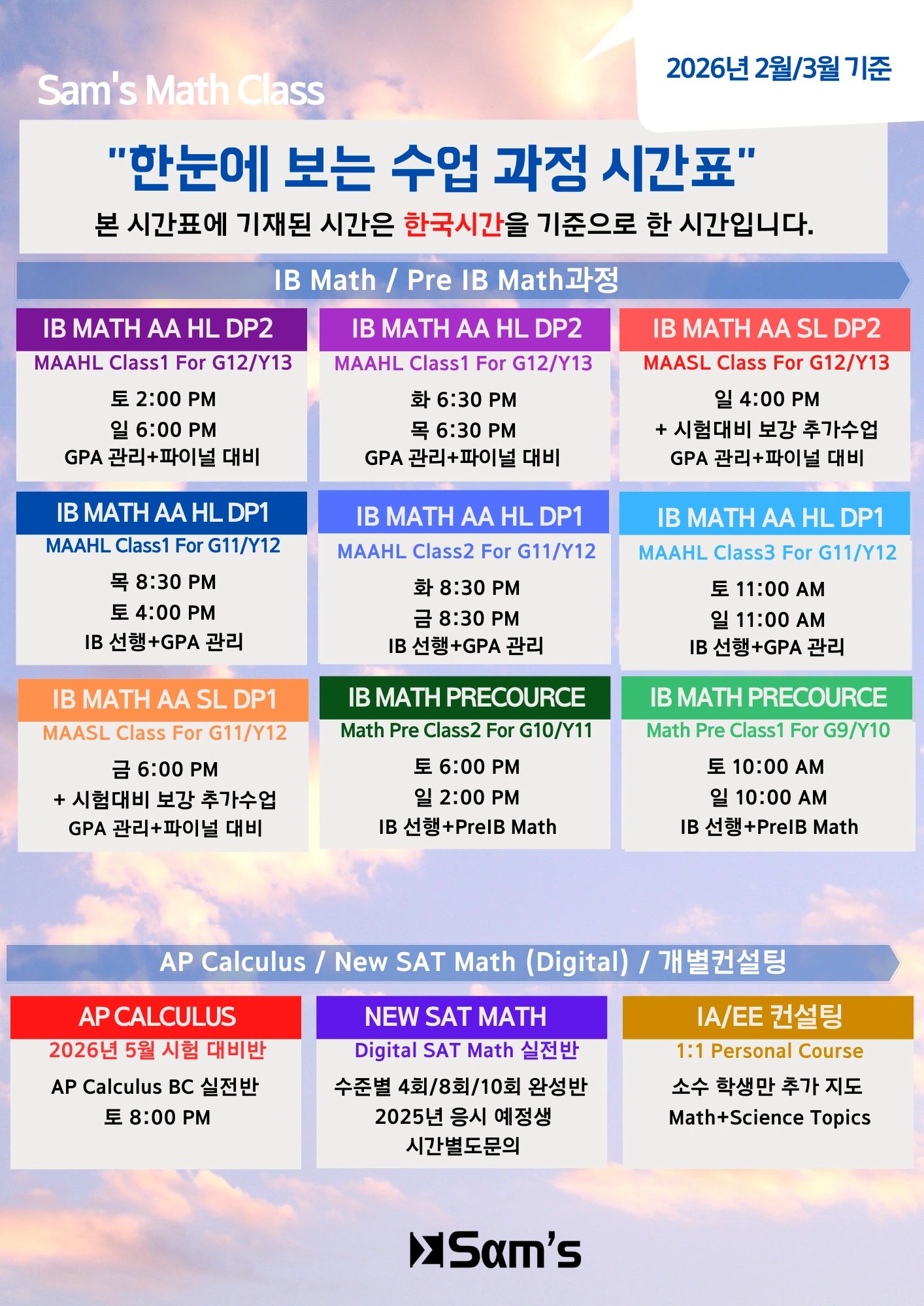 About Sam's Academy's announcements, IB-related educational information, discounts, and events, Register your email to receive notifications. Sam's Academy의 공지 사항, IB 관련교육정보, 할인 및 이벤트에 대해 알림을 받으시려면 이메일을 등록하세요.