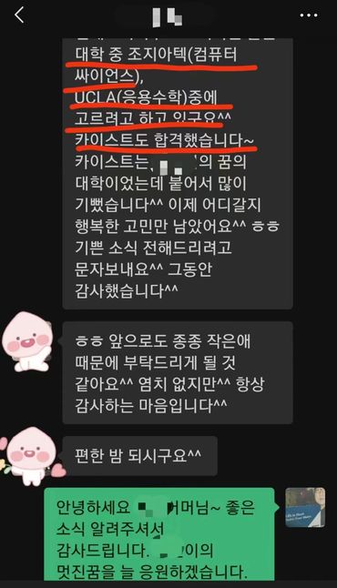 학생들이 자발적으로 직접 입시실적과 시험에 대한 성적과 결과를 알려올 뿐입니다.